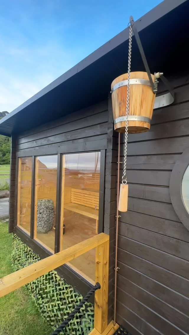 Each 75-minute session includes up to four 15-minute sauna rounds, cold-water drop buckets for cooling off, and space for up to 6 guests.